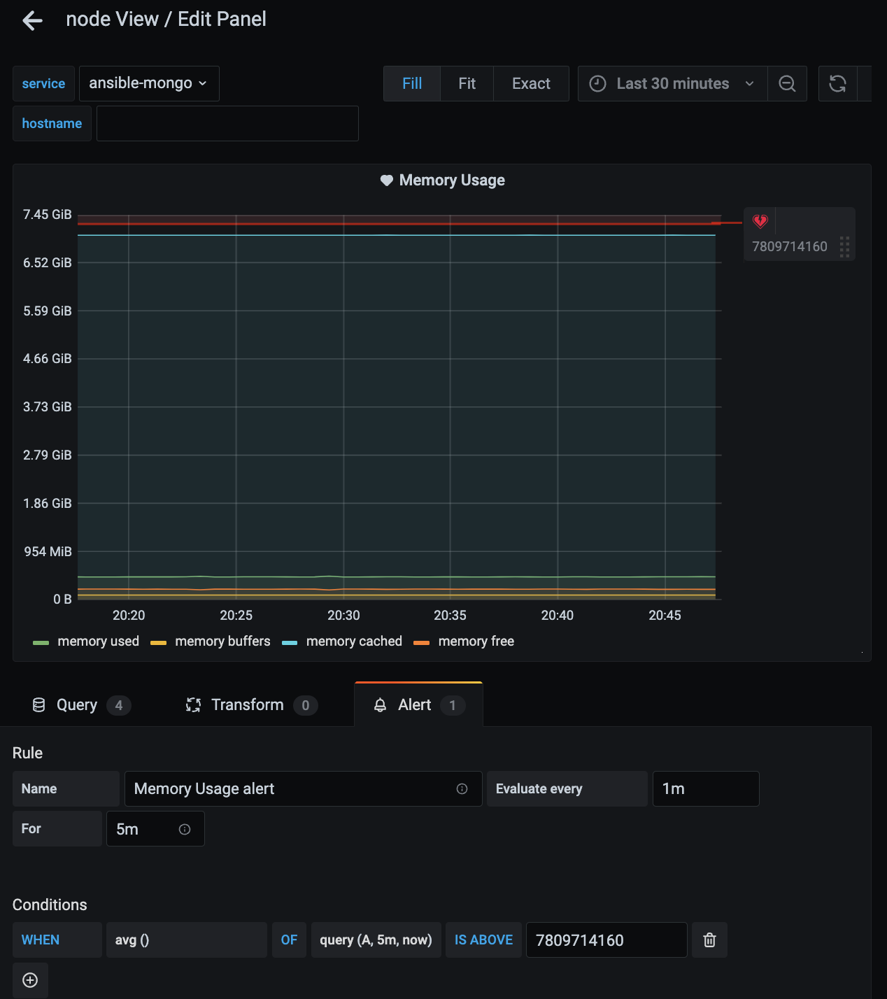 Grafana Alert을 통해 대시보드 패널에 룰을 첨부할 수 있습니다.