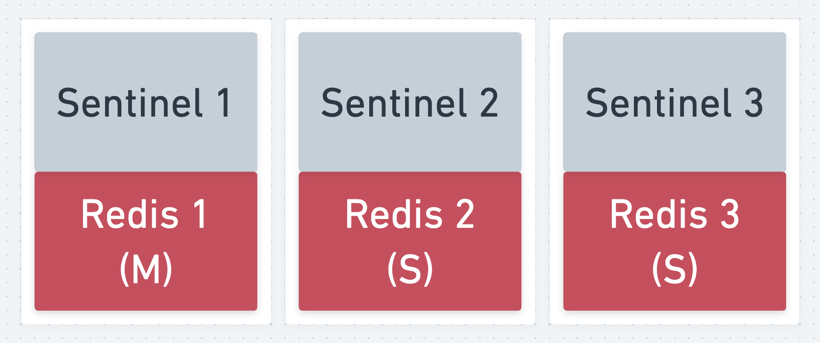 레디스 공식 문서에서는 모든 프로세스가 서로 다른 장비에 구성되는 것을 권장합니다만, Sentinel은 Redis를 observe 하는 것 외에 다른 역할을 수행하지 않아 많은 리소스를 필요로 하지 않기에, 실제 구성시에는 Redis server 와 함께 구성하기도 합니다.