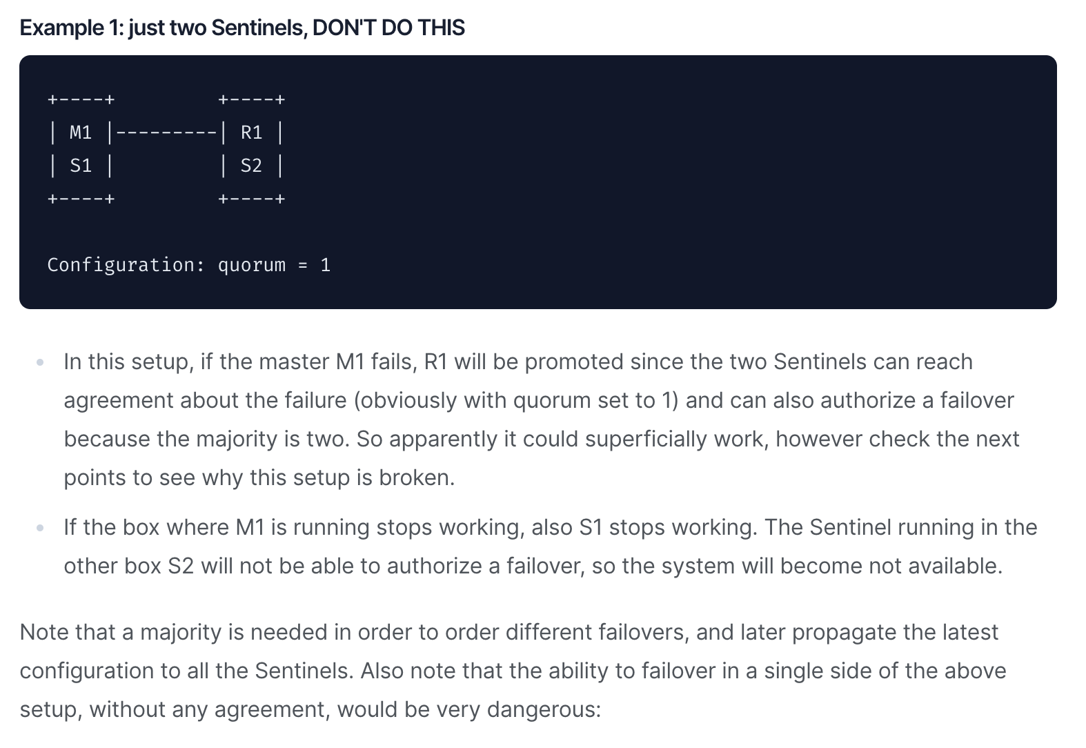 을 조정하지 못해 반드시 노드의 과반 이상의 합의가 이뤄져야 하는 반면, Sentinel